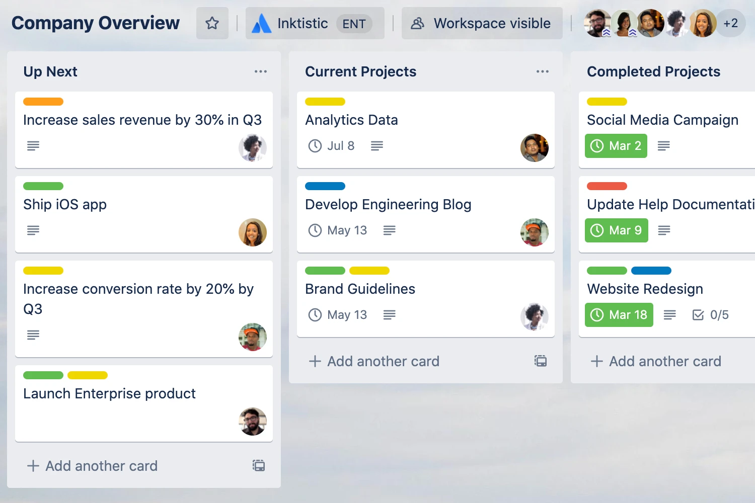 Trelloはカンバン方式でプロジェクトを視覚的に管理できるツールです。ドラッグ&ドロップで直感的に操作できるため、初心者でも簡単に使いこなすことができます。シンプルながらも拡張機能(Power-Up)によって機能追加も可能です。
