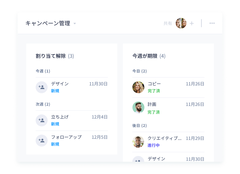 タスクの更新や変更が即座に反映され、チームメンバー全員が常に最新の状況を把握できます。情報の齟齬が減り、無駄な確認作業や「言った・言わない」といったトラブルを防止できます。自分に関係するタスクの変更だけを追うことも可能で、効率的にプロジェクトを進められます。