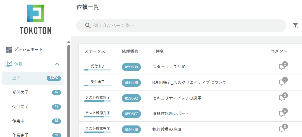 詳しいサービス内容については、依頼管理ツール「トコトン」サービスサイトからご確認ください。