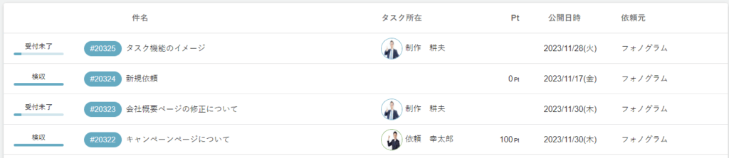 - 案件ステータスを「依頼中→対応中→確認中→公開済」などに整理し、誰でも一目で状況把握が可能に