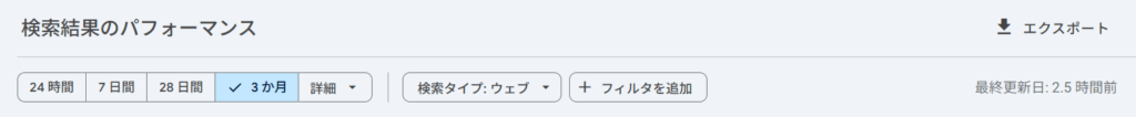「検索結果のパフォーマンス」のグラフの右上に最終更新日が表示されます。
