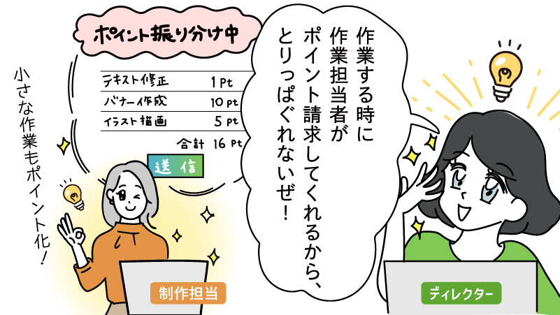 作業をポイントで記録しておけば、あとから「どの作業に、どれくらいかかったか」がひと目でわかります。 見積書を都度作らなくても、請求の根拠として活用でき、費用の取りこぼしを防げます。