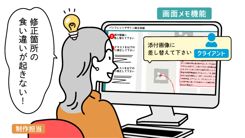修正指示が口頭やメールだけだと、どこをどう直すのかわかりにくい。 内容が食い違ったまま制作が進んでしまい、修正のやり直しになることも。